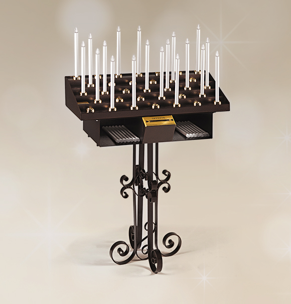 Candeliere artistico da 33 accensioni in ferro battuto con cassetta di sicurezza blindata.